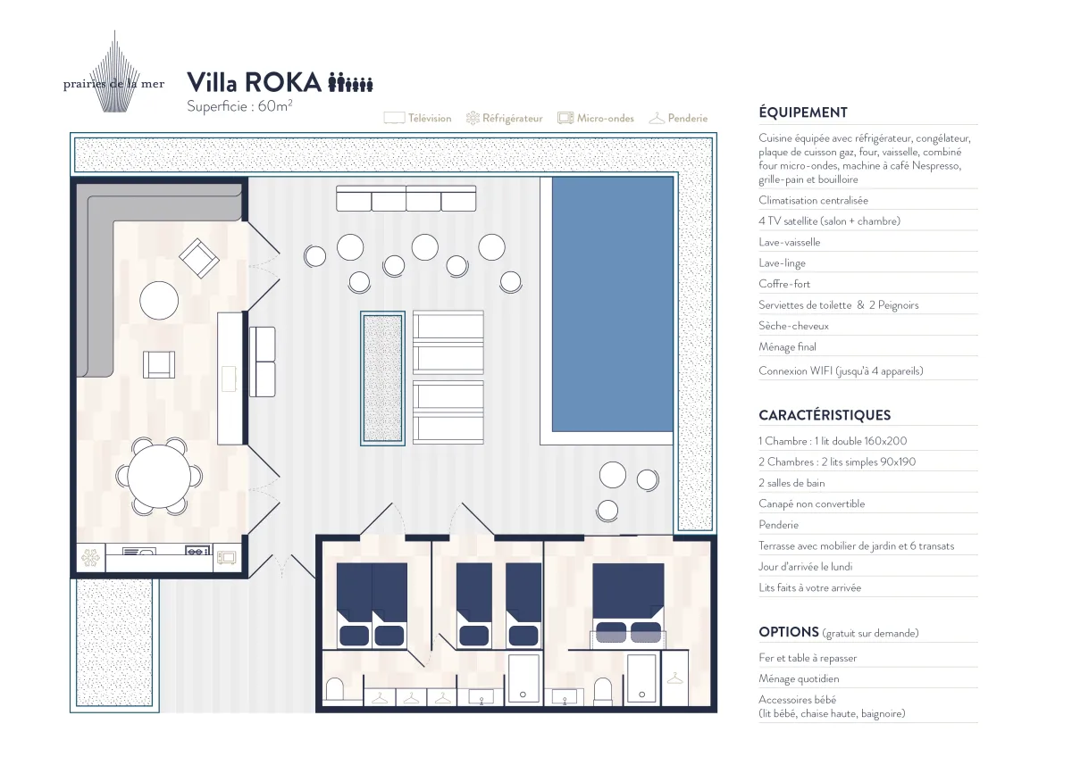 Vi offriamo inoltre un servizio di qualità poiché troverete i letti fatti al vostro arrivo. Tutti i nostri alloggi sono muniti di guanciali e coperte. Per le famiglie è possibile avere a disposizione, su semplice richiesta, un insieme di accessori bébé (lettino, seggiolone, vasca).